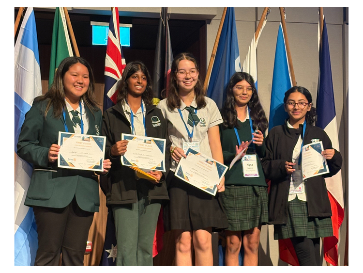 Students won gold and silver in Rotary’s Pitch for Purpose, a competition challenging young minds to tackle real-world issues as they proudly showcase awards for their innovative projects, "Dual-pipe Filtration" and "Smart Shark Nets".